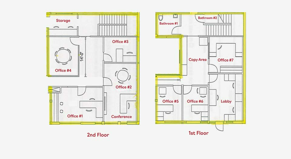 Alıcıların 2D tam renkli bir kat planıyla bir ofis alanını veya gelecekteki yenilemelerin potansiyelini nasıl düzenleyebileceklerini görmelerine yardımcı olun. Bu ayrıca, aksi takdirde basit bir düzene görsel ilgi unsuru daha ekler.